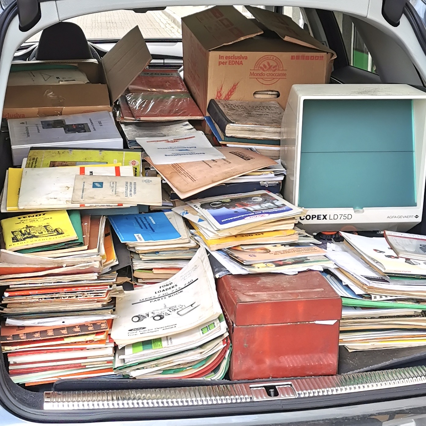 anfrage@fachliteraturversand.deKunden fragen uns immer wieder, woher wir eigentlich die vielen originalen Werkstatthandbücher bekommen.Ein ganz typisches Bild aus unserem Arbeitsalltag im Fachliteraturversand ist die Anlieferung von Paletten oder ein Pkw-Kombi, randvoll beladen mit Büchern. Genau so sah es auch bei dieser Fuhre aus: